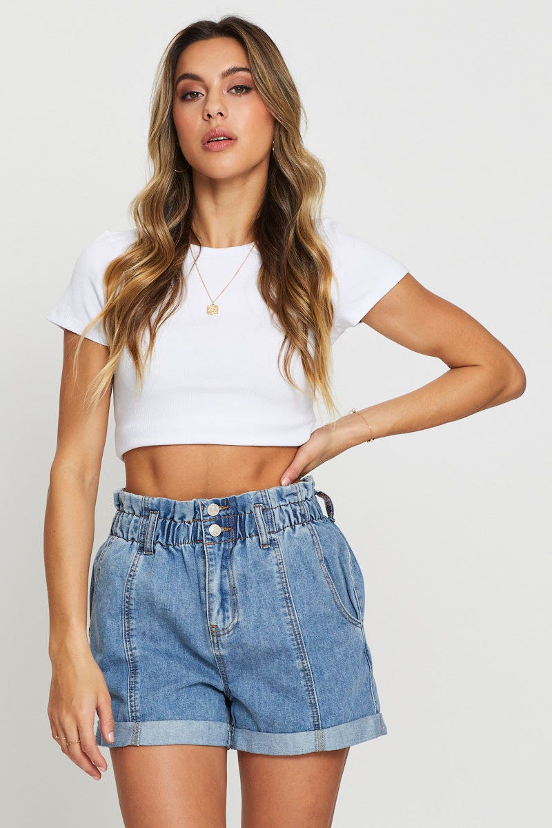 Be the first to review “Blue Paper Bag Denim Shorts High Waist”