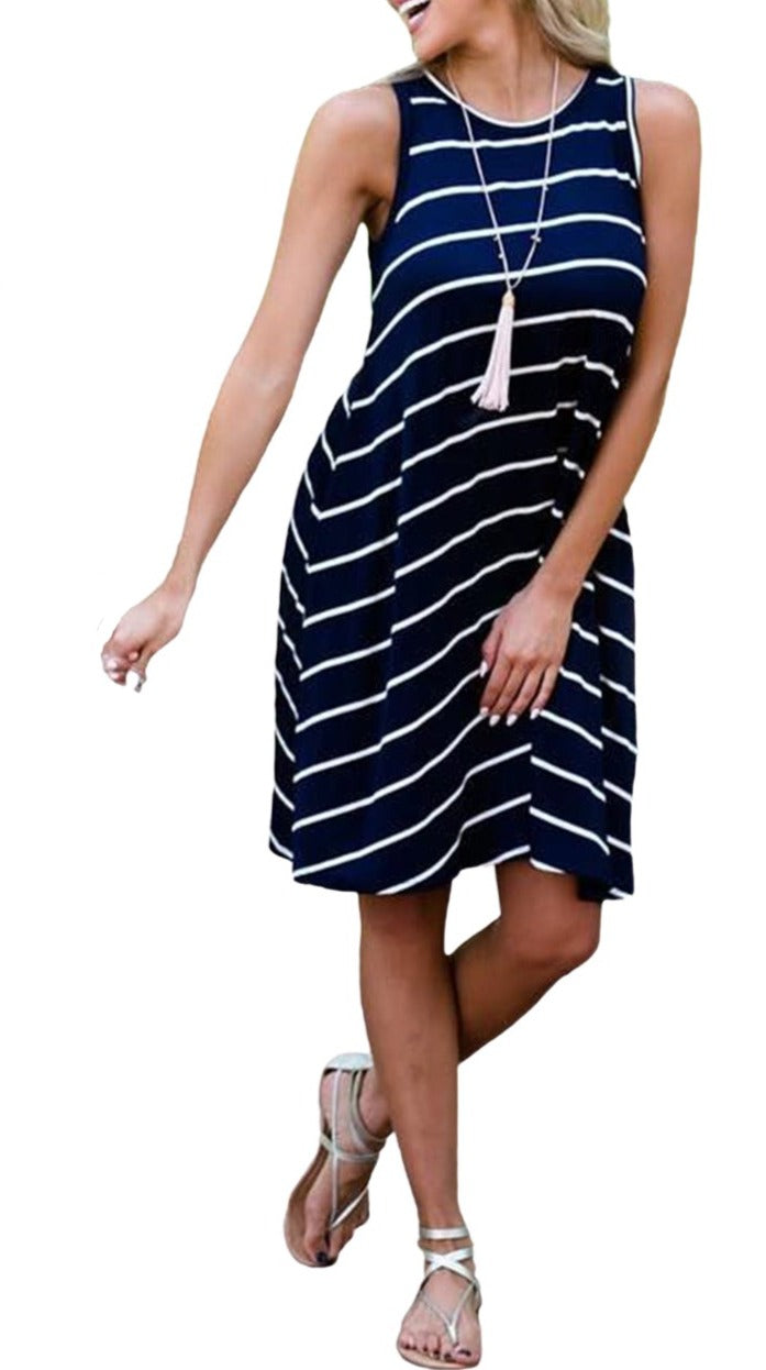 ?This striped dress is classic and never out of fashion for its timeless pattern and the simply chic design