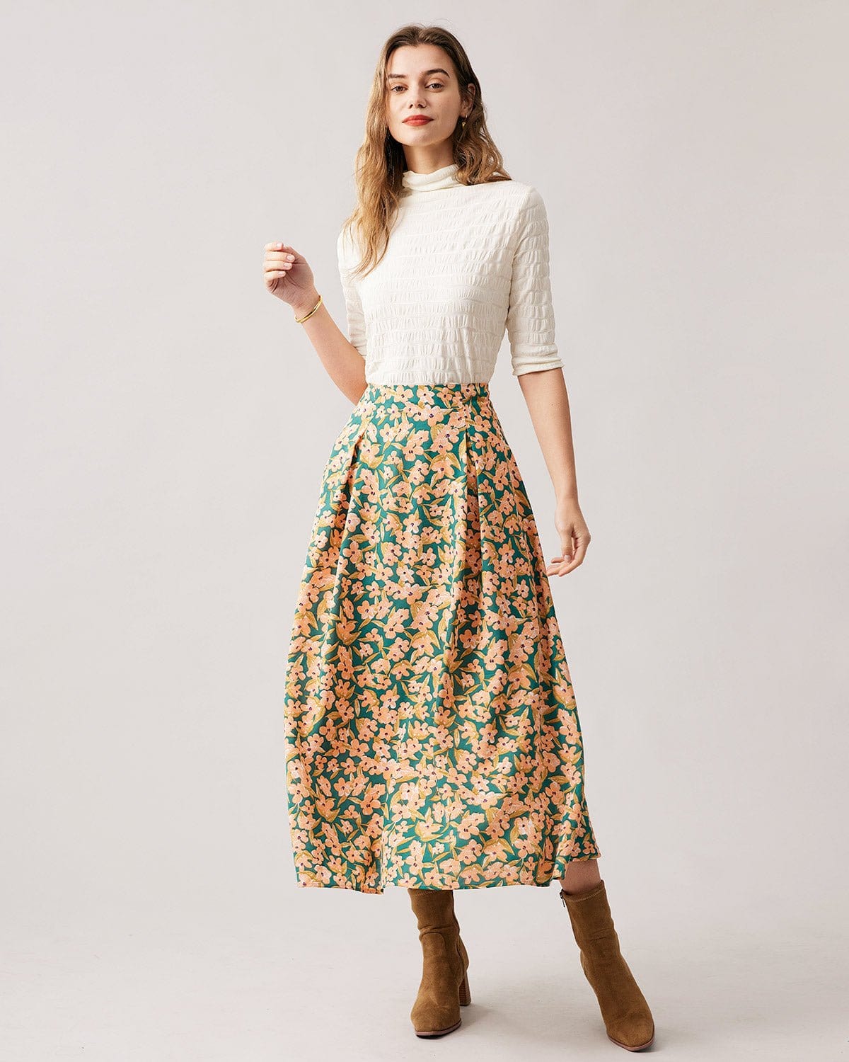 Be the first to review “The High Waisted Pleated Floral Midi Skirt”