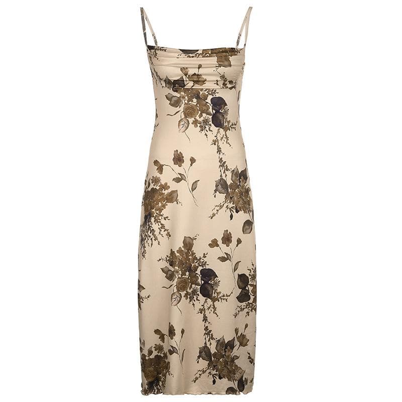 Be the first to review “Sleeveless backless cowl neck flower pattern cami dress”